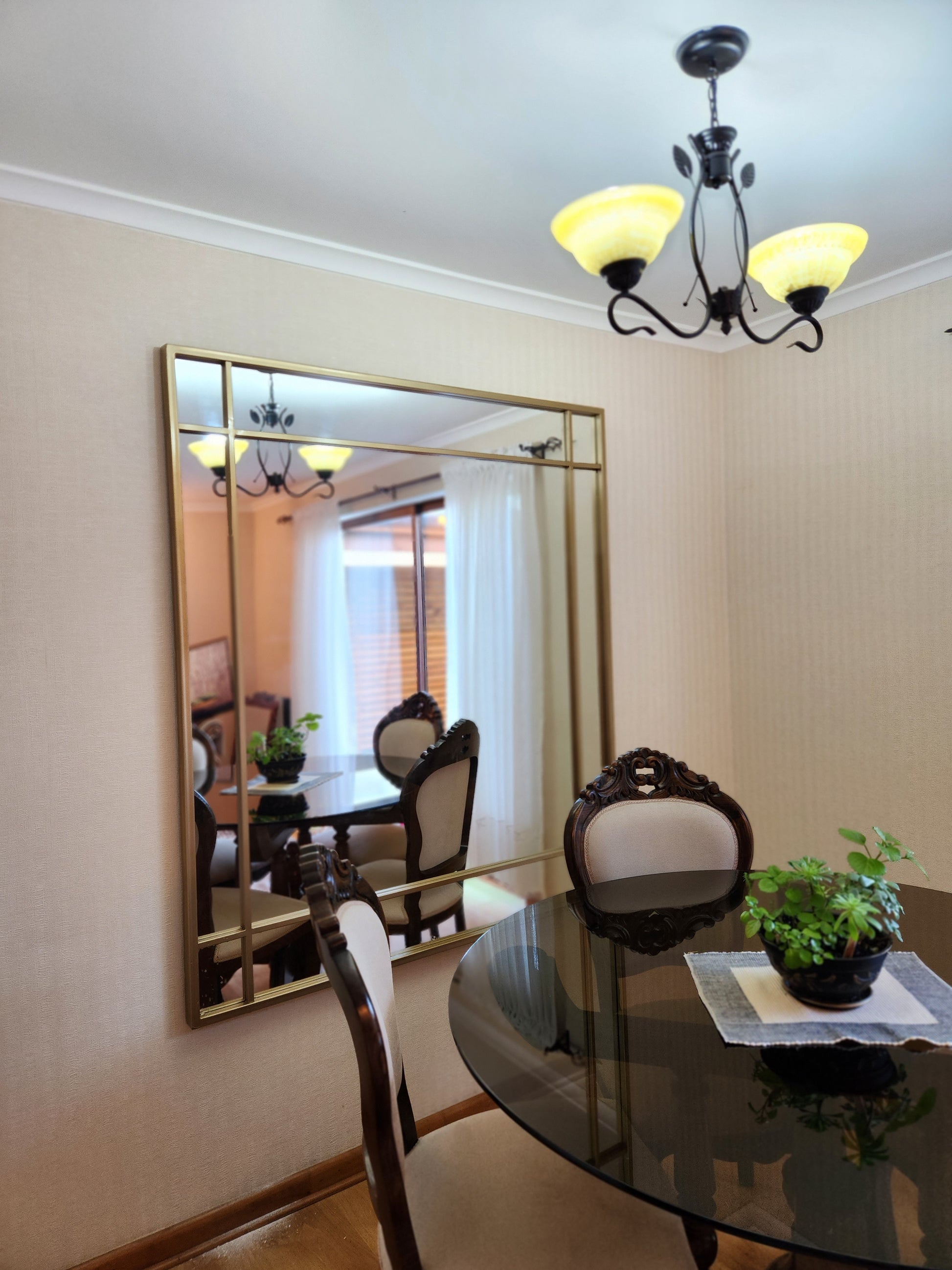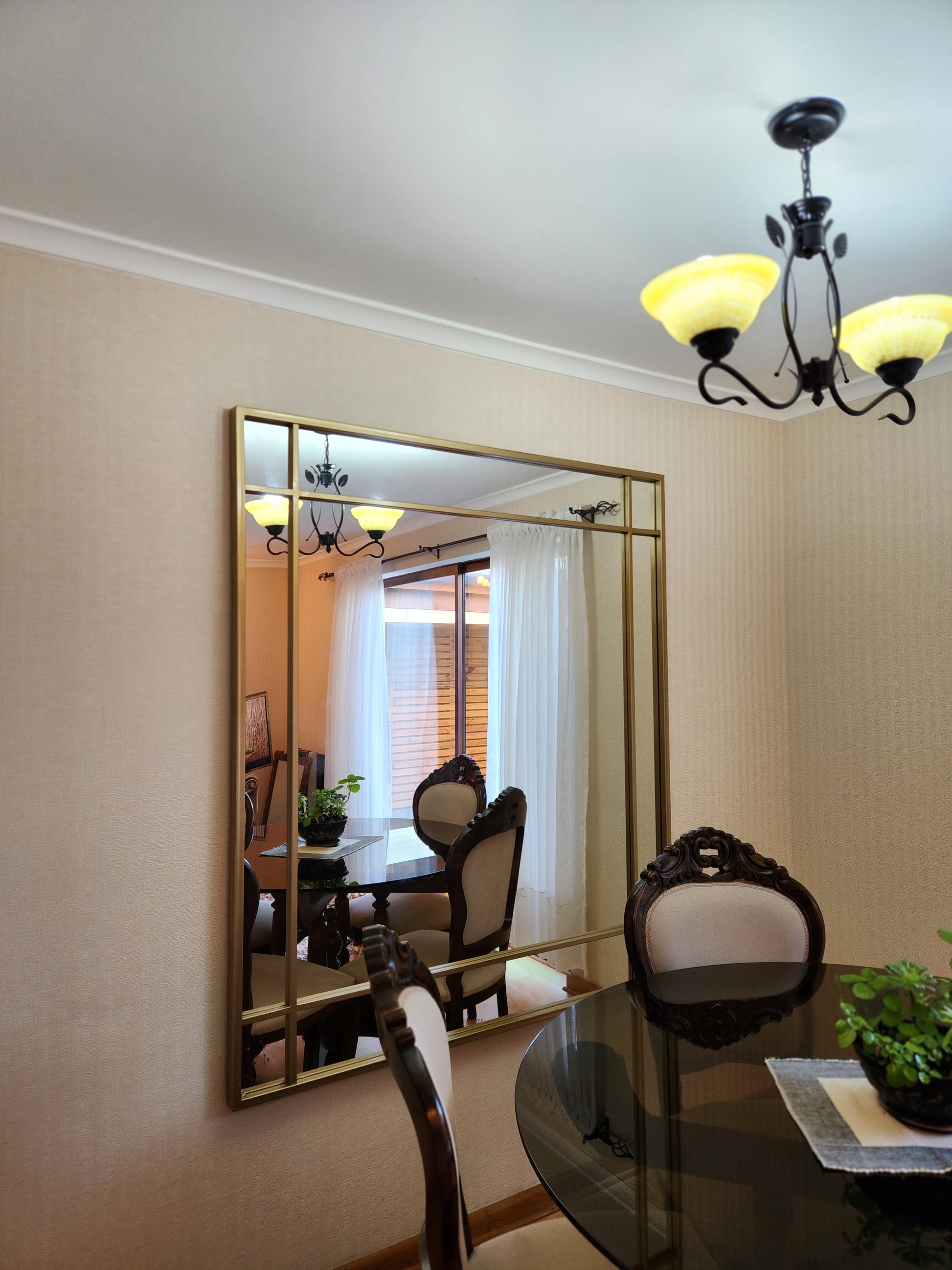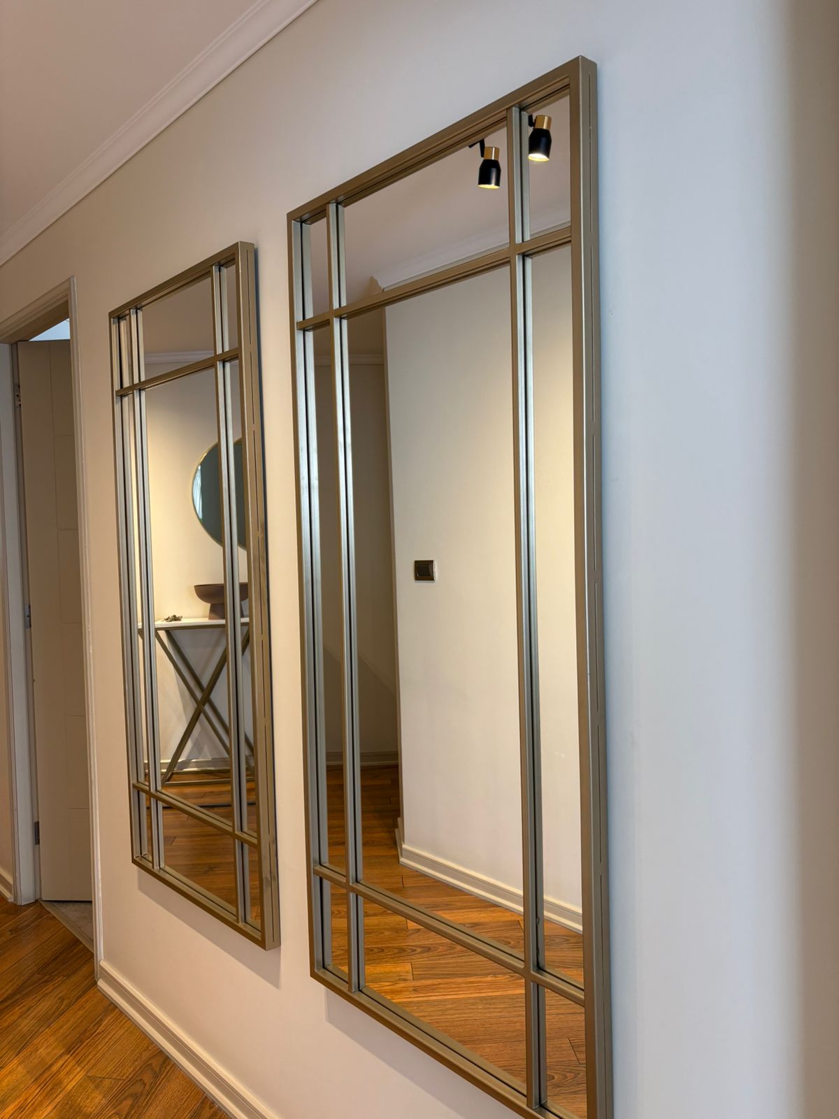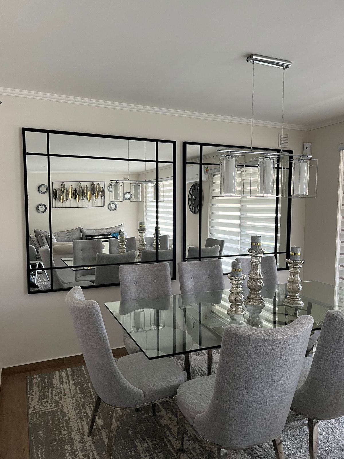 Un espejo moderno con carácter industrial, ideal para darle personalidad y amplitud a cualquier espacio. Su marco negro dividido crea líneas limpias y un efecto visual tipo loft, elevando al tiro la estética de livings, dormitorios, pasillos o estudios.