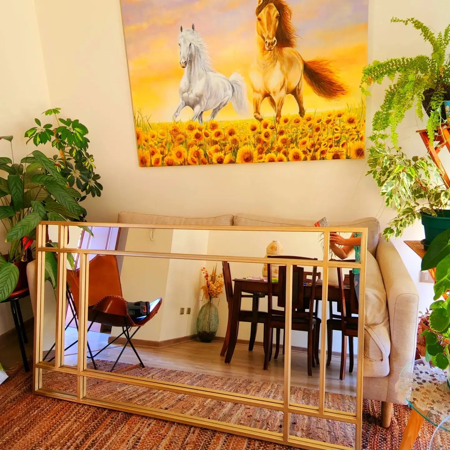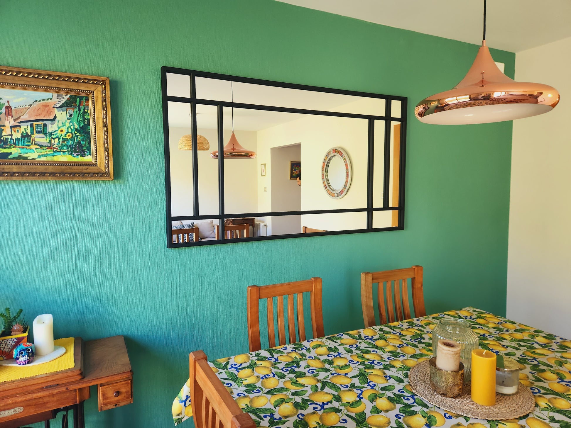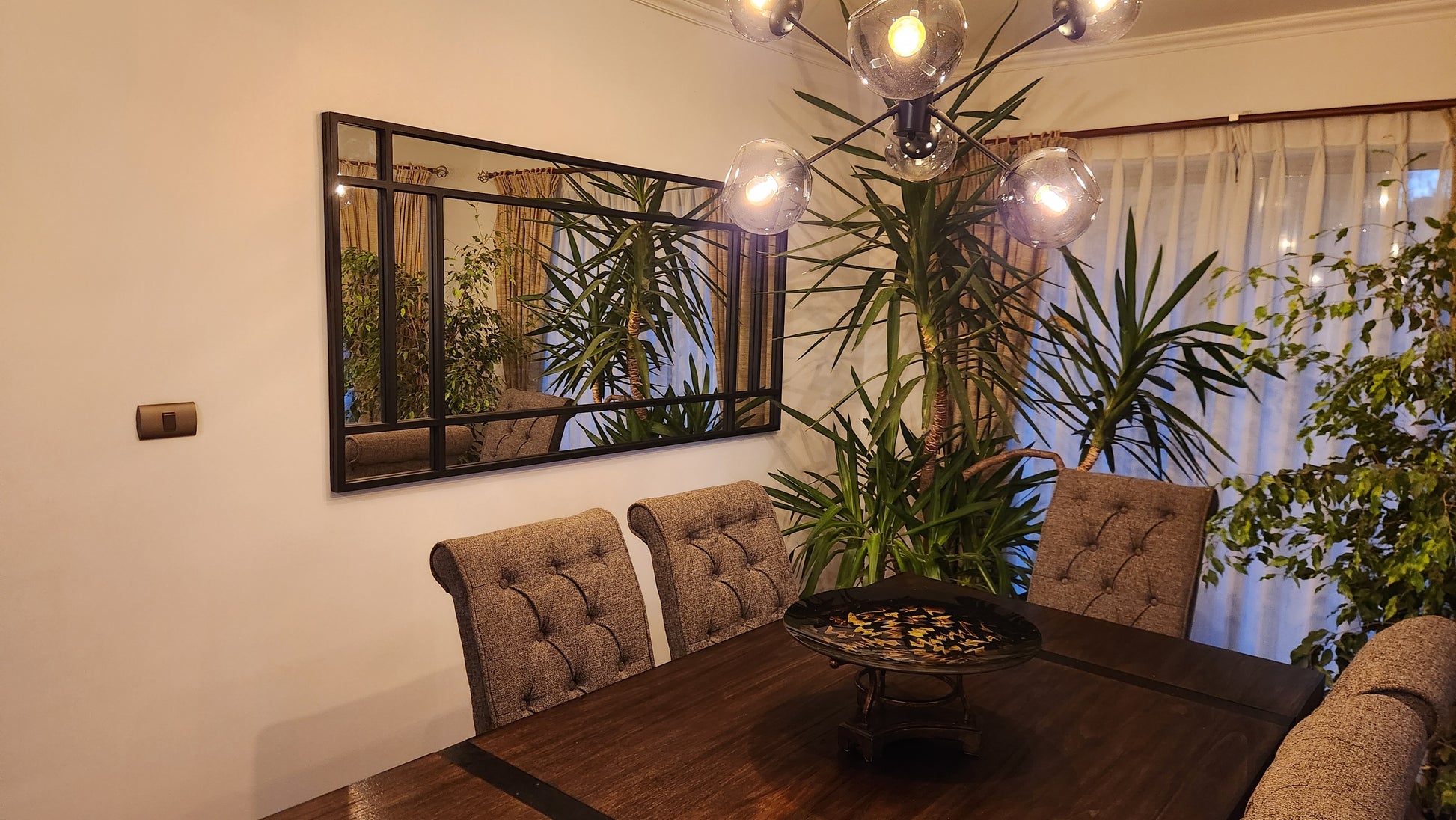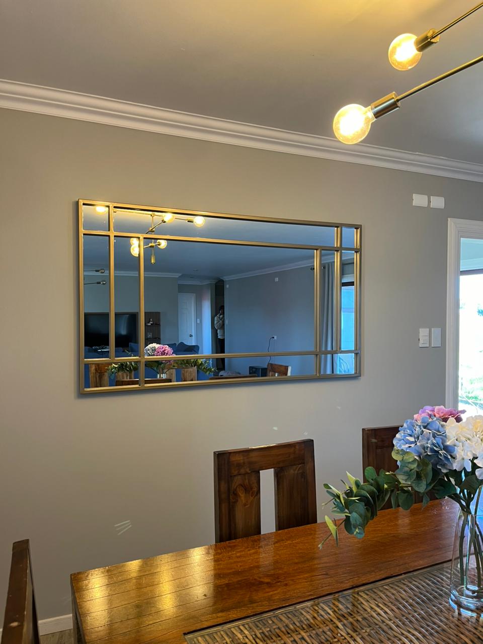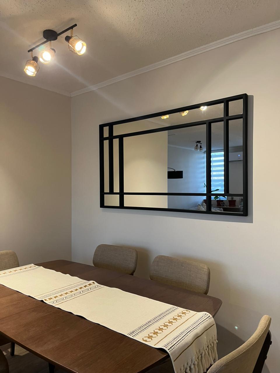 Un espejo de presencia fuerte y diseño contundente. Las divisiones gruesas en marco metálico negro le dan un carácter arquitectónico único, ideal para espacios modernos, industriales y de alto impacto visual. Perfecto para sumar profundidad, luz y un look editorial a cualquier ambiente.