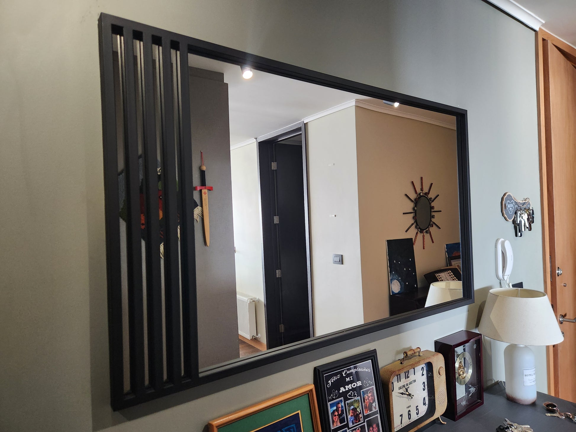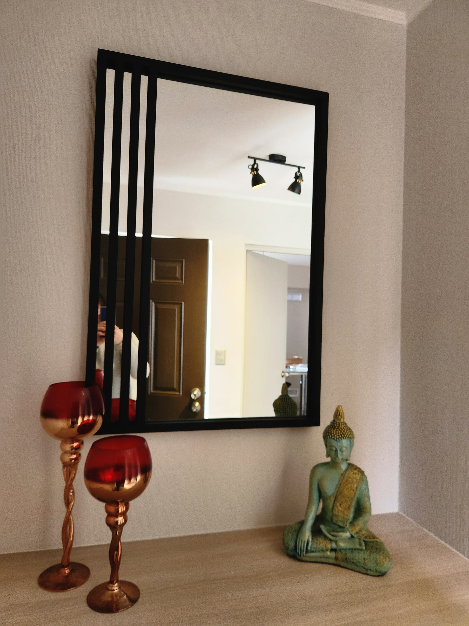 ESPEJO – Marco Negro con Diseño Lateral de Barras