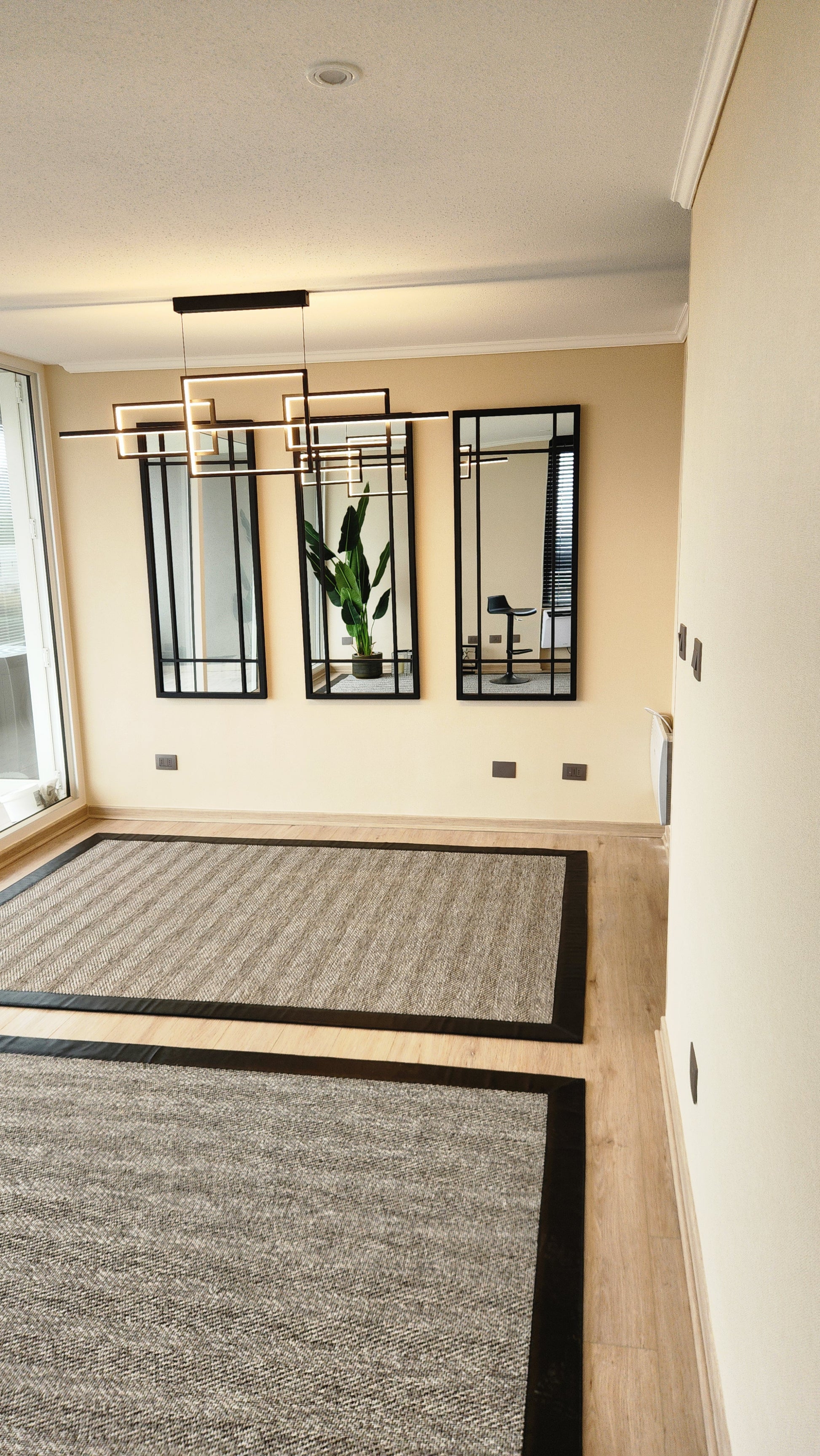 Un espejo moderno y estilizado que combina funcionalidad con un diseño arquitectónico limpio. Su formato vertical modular aporta orden visual y un toque sofisticado, ideal para entradas, dormitorios y rincones que necesitan altura y presencia.