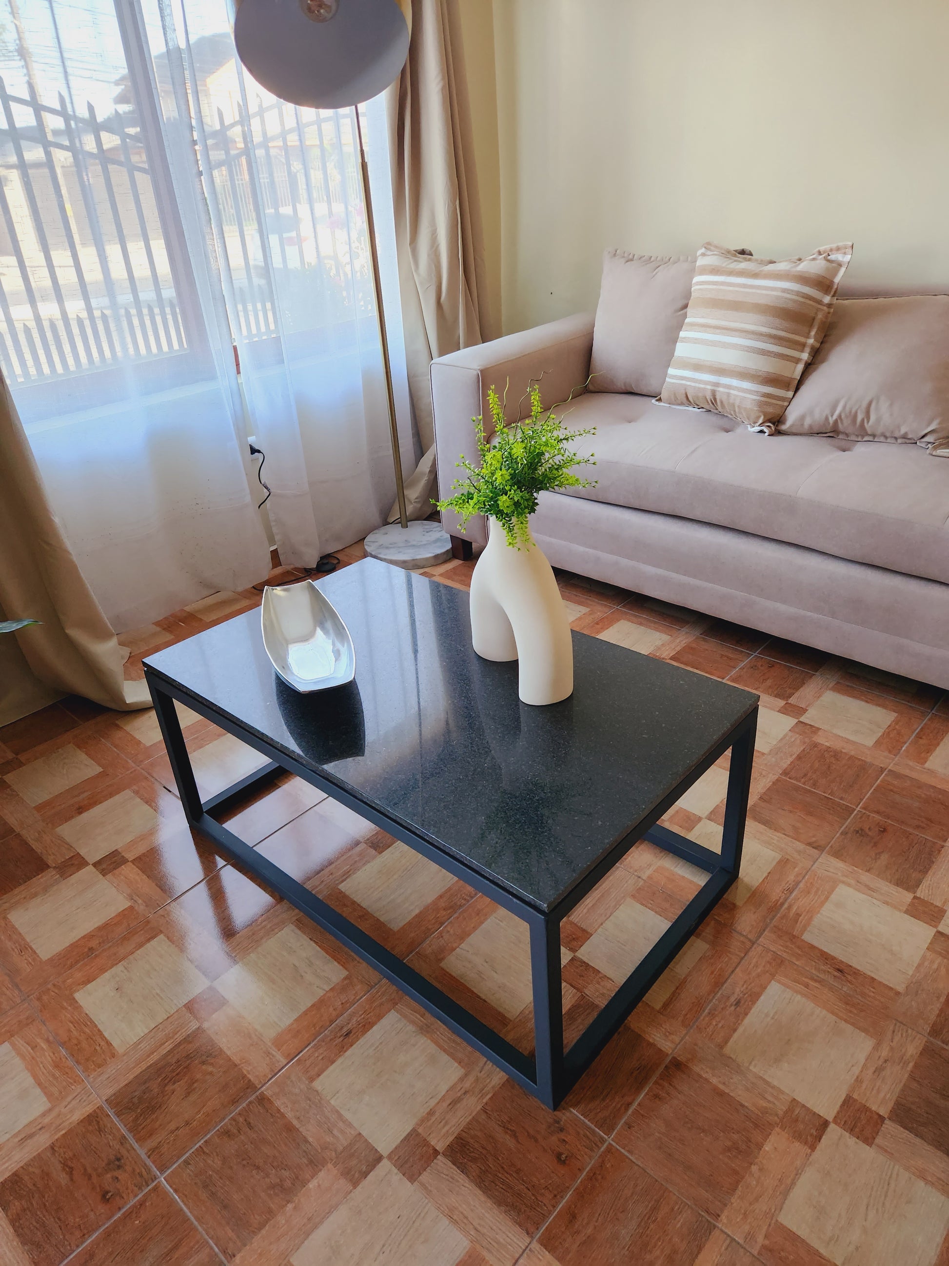 MESA DE CENTRO – Granito Negro + Estructura Metálica Negra