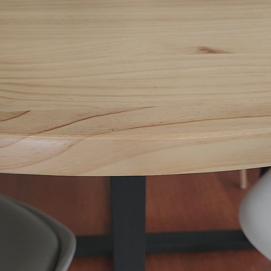 Una mesa redonda moderna y acogedora, ideal para departamentos o comedores que buscan calidez sin perder estilo. Su cubierta de pino radiata de 30 mm destaca por su textura natural y terminación premium, mientras que la base metálica aporta estabilidad y un diseño limpio que combina con cualquier ambiente.