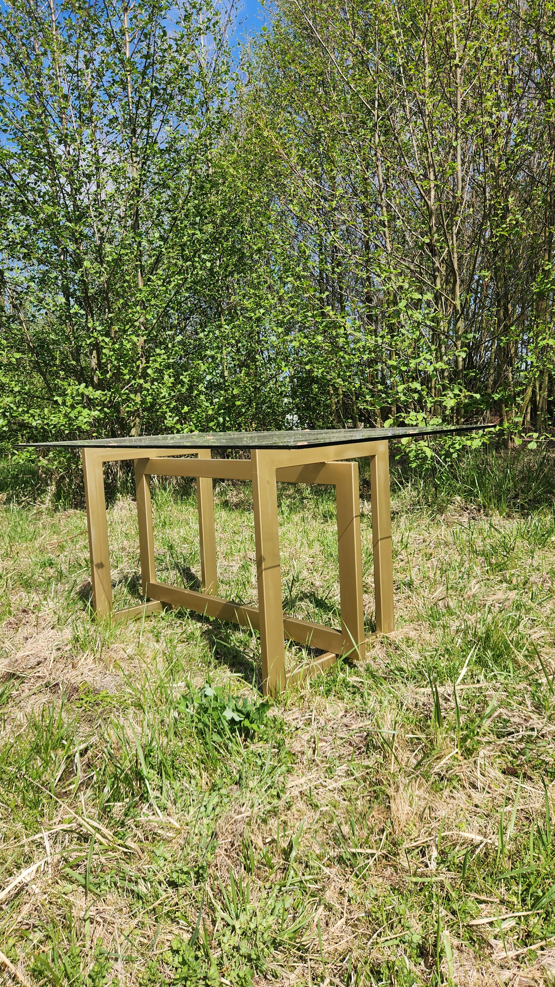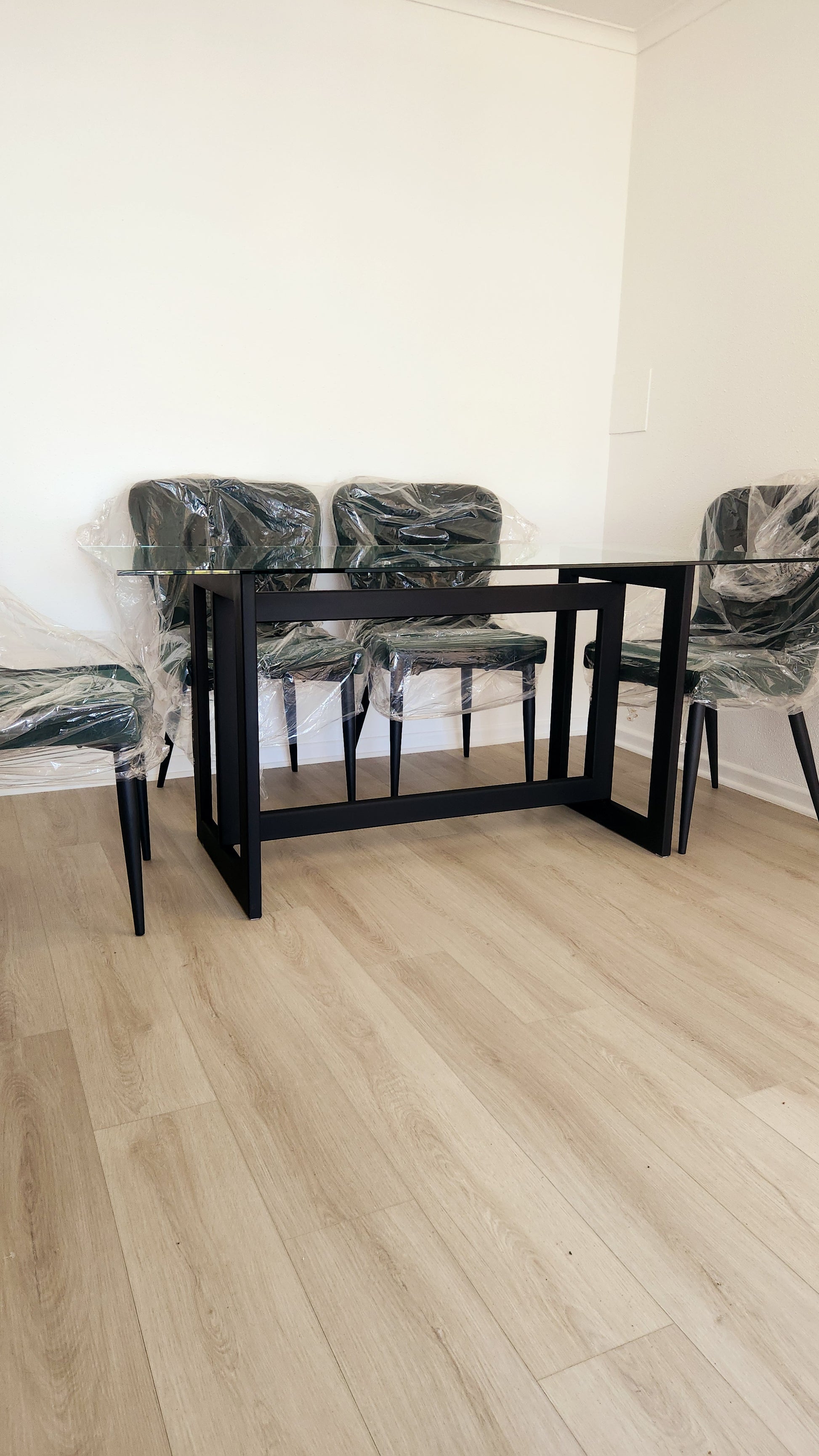 Una mesa moderna, ligera y elegante, perfecta para iluminar y ampliar visualmente cualquier comedor. Su cubierta de vidrio templado de 10 mm entrega claridad, resistencia y una estética limpia, mientras que la base metálica —en negro o dorado— define el estilo final del espacio.