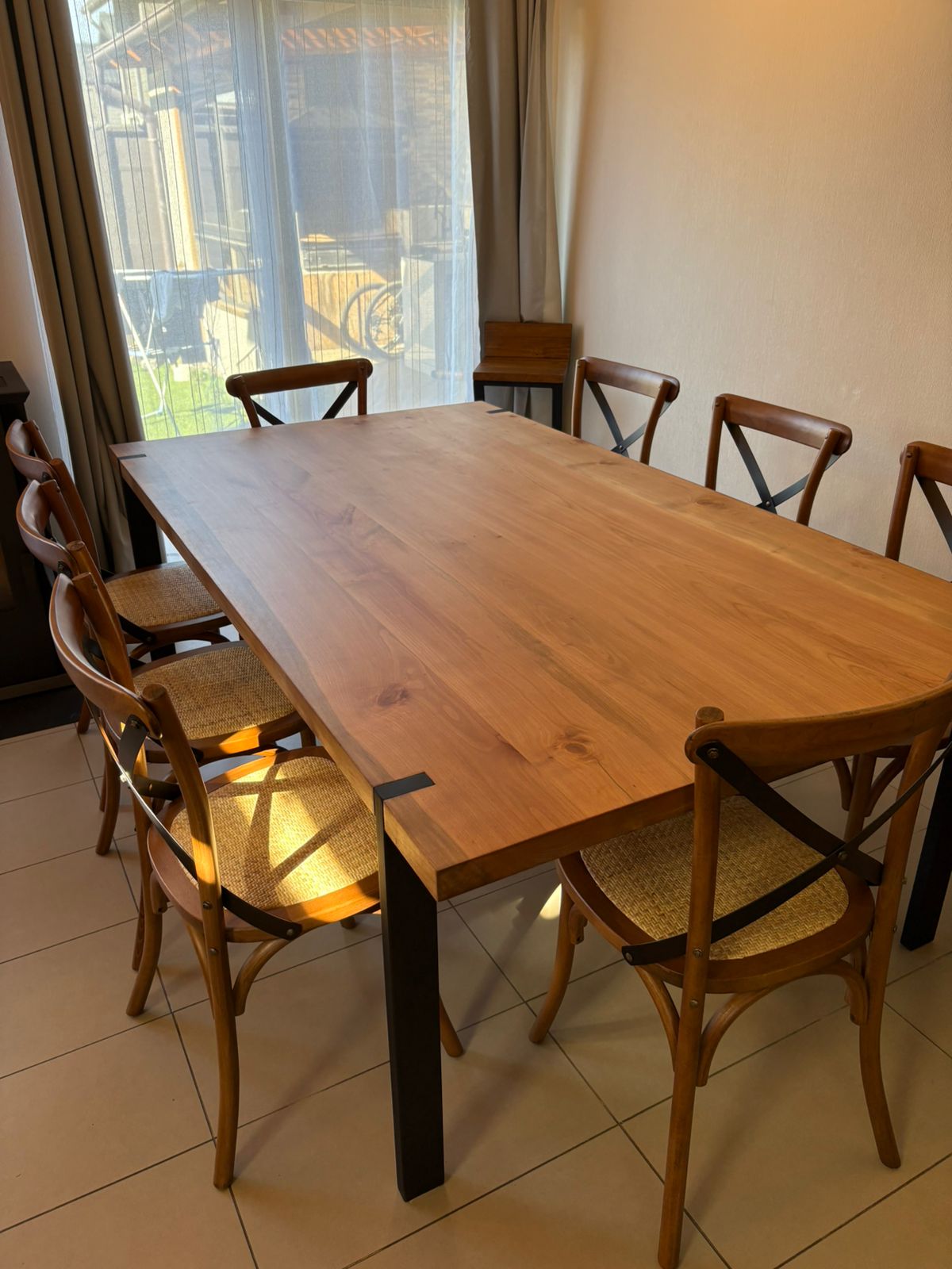 Una mesa sólida, elegante y hecha para durar. Su cubierta de raulí macizo de 45 mm entrega un look cálido y robusto, mientras que la base metálica premium aporta estabilidad y un acabado moderno digno de espacios de alto estándar. Una pieza protagonista para cualquier comedor.