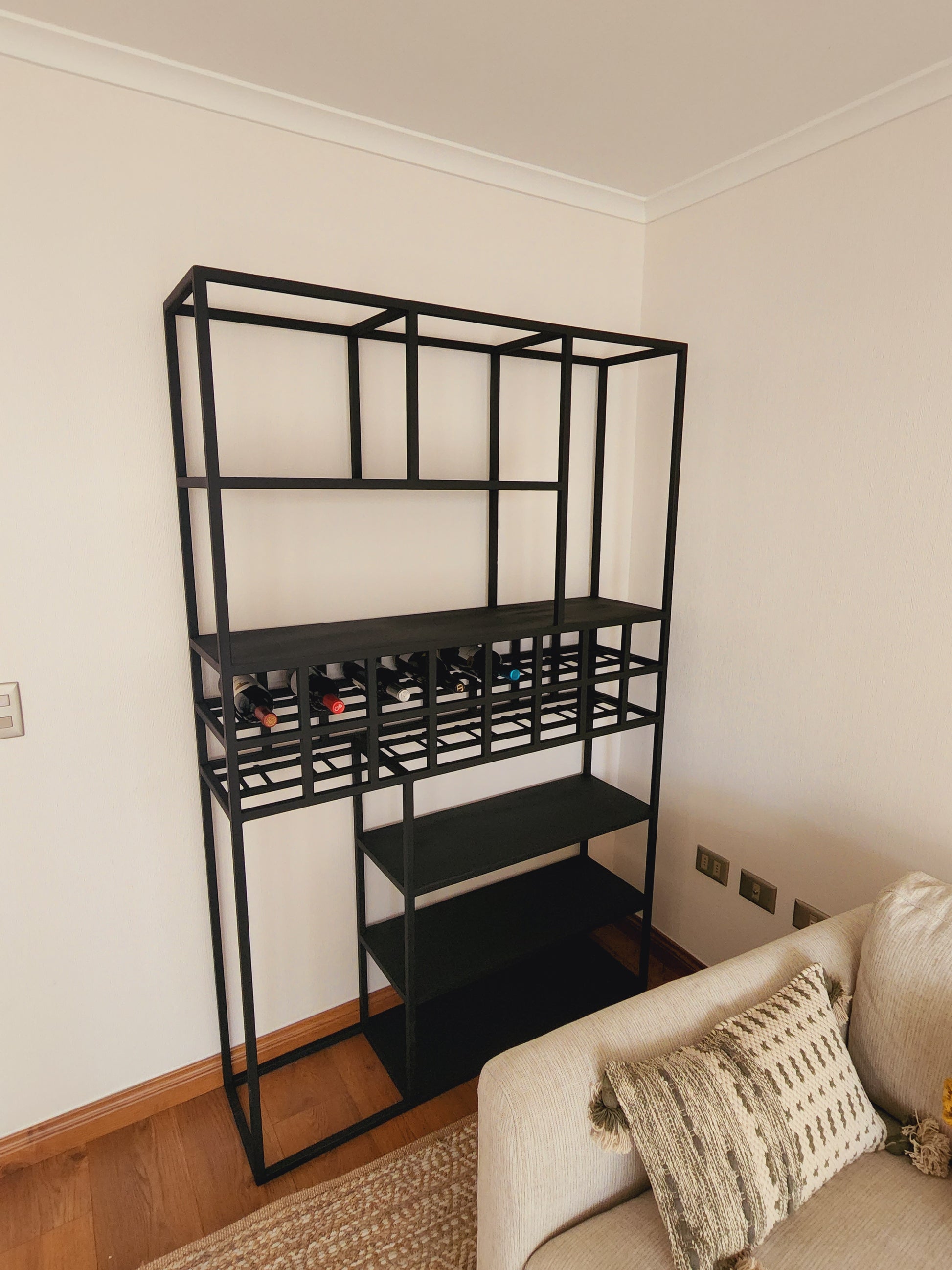 Un mueble inteligente y estilizado que combina perchero, zapatero y guarda de vinos en una sola pieza. Perfecto para quienes buscan funcionalidad sin renunciar al diseño. Su estructura metálica delgada aprovecha al máximo el espacio, mientras que las repisas inferiores permiten organizar calzado, botellas o decoraciones con estilo.
